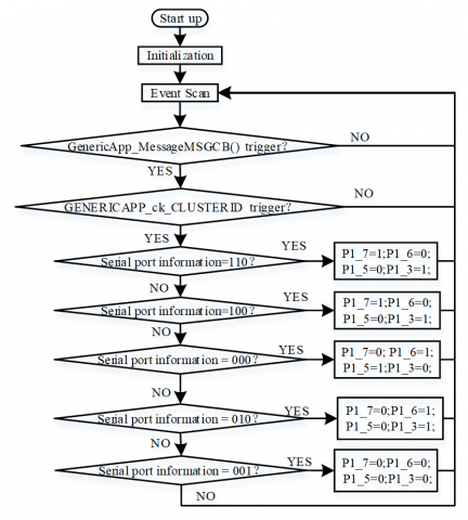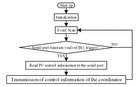 The program flow of the ZigBee coordinator for environmental parameter acquisition is shown in Fig. 9.The codes, head files declaration, macro definition, device descriptor and task initialization code subfunction [10-12] of the inspection vehicle are the same as the program controlled by buttons.