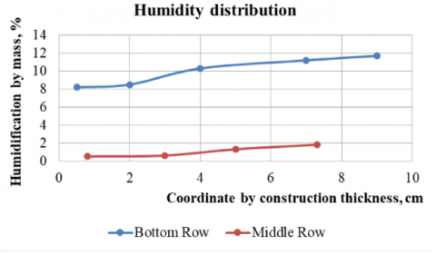 Degradation processes (formation of the alkalis from water and solid phase, and reactions of the alkalis with solid-phase) directly depend on temperature and ion concentrations of alkalis and earth-alkalis metals in the liquid phase. During the operation of the actual construction enclosure, it was affected by many factors that influence the temperature, humidification and, by implication, ions concentration. Humidity that moves through construction by the influence of vapour permeability and hydraulic conductivity enables degradation mechanisms described before. On the other hand, alternating temperature effects create different conditions for degradation processes in different layers when permeating the construction. Analysis of the heat and humidity distribution through construction is quite difficult in general. It is solved entirely only numerically, which is ineffective for the use of other complex processes, in this case - degradation. However, overviewing the general mechanism for the relatively easy cases allows understanding the transition principle of heat and humidity effects on the material degradation and concluding that it can be applied to complex constructions.