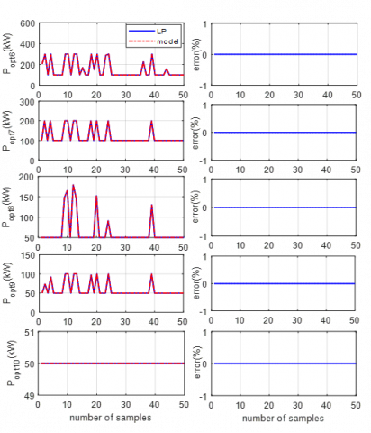 For this system, the general predictive optimization models have been also formulated using the data collected from the ED-LP based simulations. The formulation procedure is the same as that performed for the three-DG microgrid system.