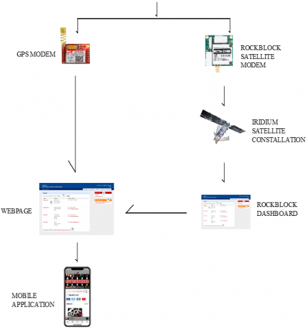 f) Rockblock Satellite Module: The Rockblock satellite module is one of the device's most vital components. It enables the sending and receiving of short messages from anywhere on the planet with a clear view of the sky, far beyond the range of Wi-Fi and GSM networks. RockBLO is always available when other networks are offline, and an emergency communication is required. RockBLOCK is powered by an Iridium 9602 satellite modem. The 9602 modules are connected to the RockBLOCK through an antenna and a 0.1" header with power and data connections [25].