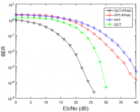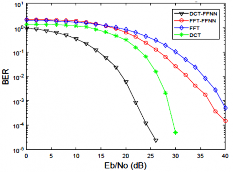 DCT-FFNN-LTE system as compared to the traditional LTE system would be useful. DCT is not inherently orthogonal like FFT, meaning that there can be some overlap in the frequency domain, potentially leading to interference between subcarriers.so it may have slightly lower spectral efficiency compared to FFT, but when using FFNNs with DCT will reduce interference, or adapt to changing channel conditions intelligently. DCT may exhibit better resistance to certain types of noise and interference due to its energy compaction properties as compared to FFT.
