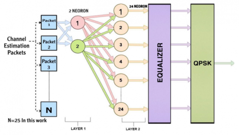 Figure 4 shows the channel estimation and signal detection operations in equalization. The binary signal is modulated and sent over the multipath fading channel after the digital source is typically protected by channel coding. The total signal is received after additive noise has been introduced. The received signal contains some inter-symbol interference (ISI) as a result of the multipath channel. To accomplish proper balancing (ISI elimination). The training sequence of bits, which is exclusive to a given transmitter and is repeated in every transmitted burst, serves as the foundation for channel estimate. The detector receives information from the channel estimator about the channel impulse response (CIR), and the detector uses the sent bits and corresponding received bits to estimate the CIR for each burst independently. A separate channel estimator can perform this task. It should note that ANNs can take a long time as compared to traditional methods.