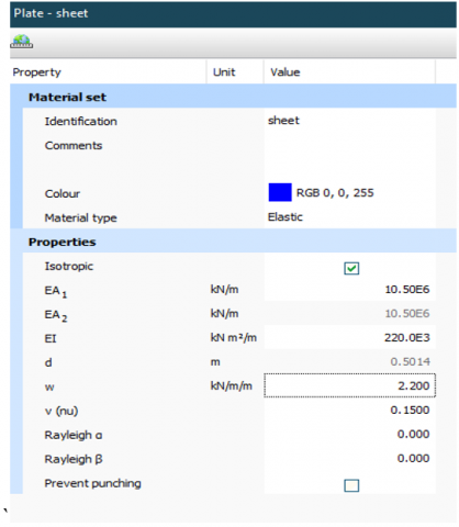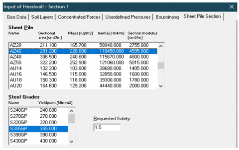 Figure 5 displays the structural characteristics selected for the AZ46-700N steel section of the sheet pile.