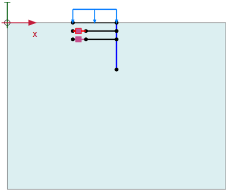 Figure 4. The shapes of the two-anchored sheet pile in the 2D Plaxis model