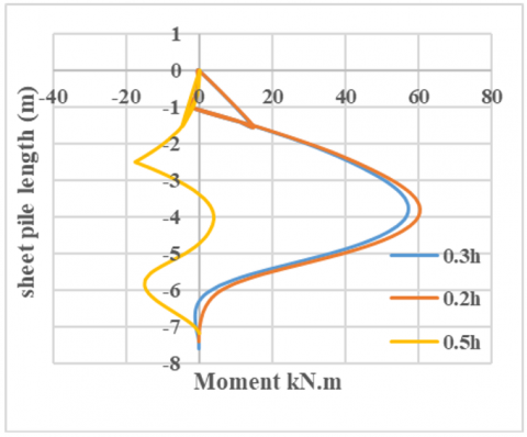 Figure 50. Sheet pile moment curves with anchor in water table levels