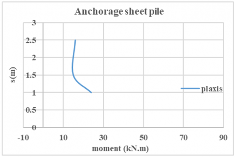 Figure 53. Anchorage sheet pile moment diagram (anchor length case)