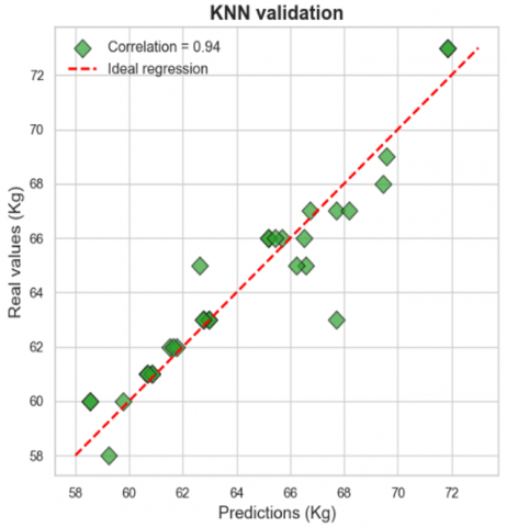 Based on the results obtained, KNN stands out as the optimal model for predicting the amount of ANFO, as shown by a comprehensive analysis of performance metrics, confidence intervals, and statistical tests. KNN achieved the lowest RMSE (2.37) and MSE (5.60), along with the highest R2 (0.84), demonstrating its high accuracy and predictive capability. Additionally, its confidence interval for RMSE [1.01 – 3.75] is relatively narrow, indicating consistency in predictions. The student’s t-tests also support this choice, showing statistically significant differences between KNN and other models, thus consolidating KNN as the best option for this task.