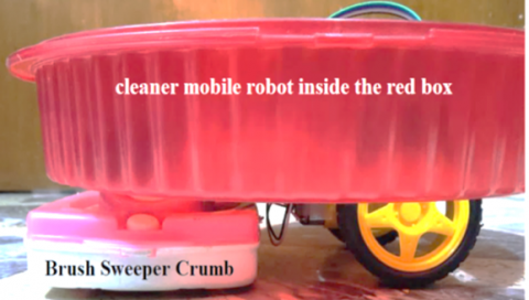 The experimental smart cleaner mobile robot after connecting all its hardware is seen in Figure 13 and Figure 14. The circular red box diameter is 30 cm.