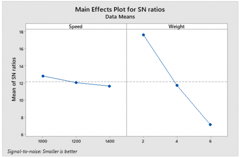 Figure 13. Taguchi analysis: GRG versus speed and weight