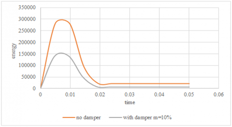 Figure 57. Comparison of the time-energy curve caused by the explosion for a pit with a width of 16 meters without and with damper