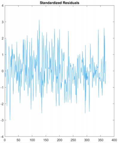 Figure 13. Prediction errors of the model ARMA(1,0,1)-NAGARCH(1,1)