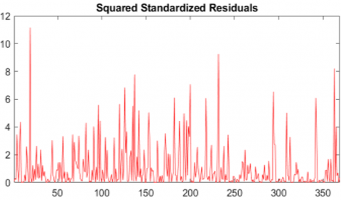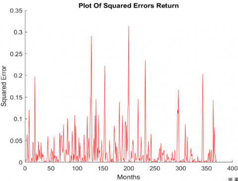 Figure 13 shows that the squared errors gradually approach zero in the long run, indicating that the model is trying to stabilize but may face challenges with high volatility. Low errors in the short run enhance the efficiency of hybrid ARIMA-NAGARCH model for near-term forecasts. However, there is a need to improve model strategies to address errors that appear in long- term forecasts.