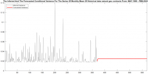 From Figure 12, the model shows acceptable performance in short-term forecasting, but may need improvement to accommodate dynamic changes in the long-term. Also, the conditional variance matches the actual behavior, which enhances the stability of the model.