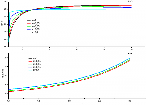 $\begin{gathered}p^0: U_0(x, t)=\max \left(e^x-1,0\right), \\ p^1: U_1(x, t)=-\max \left(e^x, 0\right) \frac{-k(\varphi(t)-\varphi(a))^\alpha}{\Gamma(\alpha+1)}+\max \left(e^x\right.-1,0) \frac{-k(\varphi(t)-\varphi(a))^\alpha}{\Gamma(\alpha+1)},\end{gathered}$