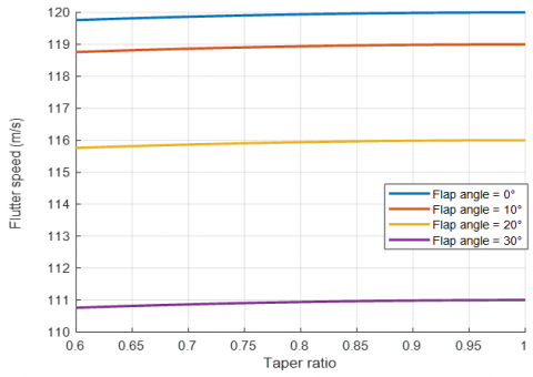 aeroelasticity, sweep angle, flap angle, taper ratio, aerodynamic, MATLAB