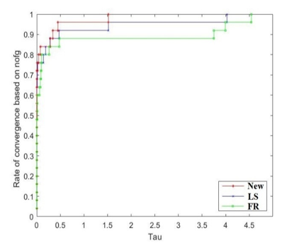 The comparative method developed by researchers Dolan and Moré [23], which consisted of generating performance curves for each algorithm, indicated that the proposed method is superior than the traditional methods. The higher the curve, the greater the likelihood that the greatest number of functions will be solved and that the objective will be accomplished.