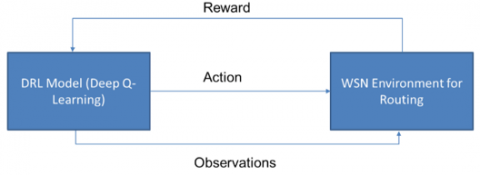 Figure 2 illustrates the interaction between the DQL model and the WSN environment. The DRL model (DQL) agent observes the network state, selects an optimal routing action, and receives feedback based on network performance. This feedback is used to update the Q-values, enabling the model to learn better routing policies over time. The loop ensures continuous adaptation to dynamic WSN conditions, enhancing energy efficiency and reliability.