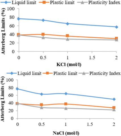 3.1 Effect of KCl and NaCl salts on the Atterberg limits