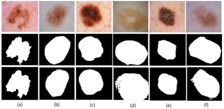 The dermoscopy image segmentation process on numerous images is indicated in Figure 12. The proposed model accurately applies segmentation process accurately and extracts the relevant region from dermoscopy images.