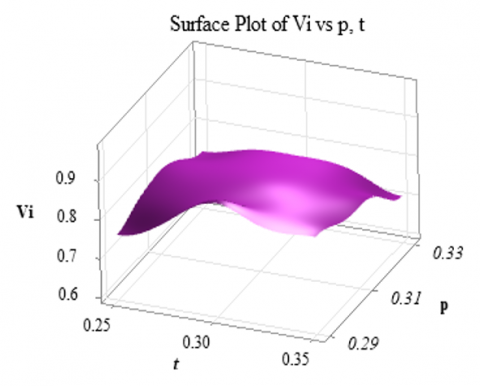 Vi = - 13.81 p2 +6.33 p + 0.167 t + 0.00696 l + 0.0067 r