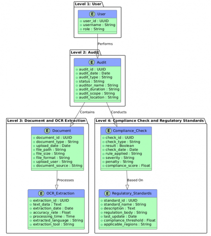 Legacy audit procedures face major challenges associated with manual document identification and verification, and tracking compliance checks. These challenges create bottlenecks, increase the likelihood of errors, and limit scalability. To overcome these challenges, this research proposes an automated auditing system using advanced OCR, Natural Language Processing (NLP), and LLMs, all under the Langchain framework. This solution is applicable to both annual and internal audits, enabling real-time verification of compliance data and significantly increasing the speed, accuracy, and reliability of audit procedures, and the proposed workflow is shown in Figure 4.