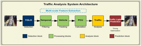 Recent advances in computer vision have enabled the development of robust vehicle detection systems capable of operating under diverse environmental conditions. Prayitno et al. [7] demonstrated how distributed sensing architectures with cooperative observers can enhance detection reliability in vehicle platoons by sharing state information across vehicles, providing redundancy and improved estimation accuracy in challenging environmental conditions. Wang et al. [8] developed RAGENet, a controlled fusion architecture integrating foggy image processing through YOLOv8, achieving superior performance metrics. However, their framework remains limited to congestion recognition without considering subsequent traffic signal optimization.