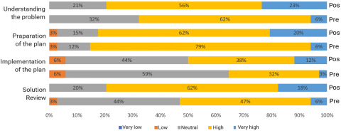 Following the intervention, students demonstrated a significant improvement in their ability to understand problems. Specifically, 23% of the students reported a "Very High" level of comprehension, while 56% indicated a "High" level. These results reflect a strengthened capacity to analyze, contextualize, and conceptualize complex problems.
