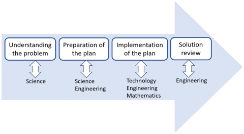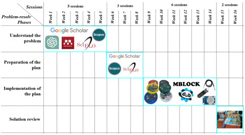 This model provides a structured path to integrate STEM learning with real-world application [2, 31]. Our research builds on this model but extends it by incorporating low-cost ICT tools (e.g., sensors, block-based programming) in collaborative student projects tied to local community problems. For example, in the “understanding” phase, students explored scientific concepts and causal relationships. In the “planning” phase, they proposed alternative technical solutions. During “implementation,” they developed algorithms and created prototypes using electronics and programming. Finally, in the “review” phase, they tested and validated solutions, reinforcing engineering and evaluation skills.