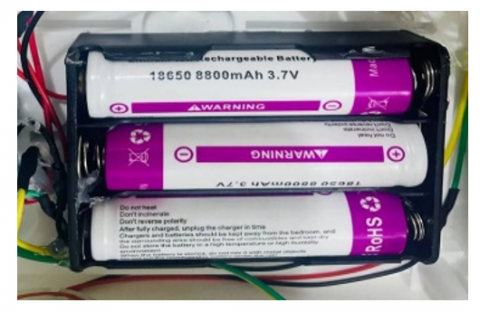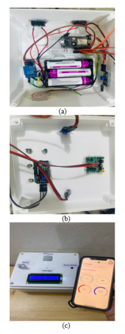 In this work, many portable gadgets were powered by a lithium battery base. Rechargeable lithium batteries have a high energy density and are lightweight, which makes them perfect for use in portable applications like this one. An approximate total voltage of 11.1 V (3.7 V per cell) is provided by this battery. Using a voltage regulator, the battery is connected to different electronic parts in the operation. The battery powers the ESP 8266, an electronic device that connects to Internet networks and transfers data, with a voltage of 7.5 volts. The water pump's purpose was to elevate water and pump it into the irrigation system, even though it was powered by a 3.7 volts battery. Figure 9 displays the lithium battery base and the lithium (3.7 V) battery.