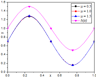 Figure 2. Behavior of interface for various values of $\mu$ with $\phi=0.5, Q=0.1, a^{\prime}=0.25$