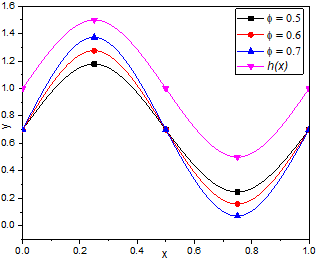 Figure 3. Behavior of interface for various values of $\phi$ with $\mu=0.5, Q=0.1, a^{\prime}=0.25$