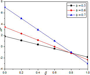 Figure 6. The pumping characteristics $\bar{Q}$ vs. $\Delta P$ on $\phi$ with $\mu=0.5, a^1=0.25$