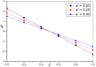 • The pressure rise increases along mean flow rate as the amplitude ratio and viscosity ratio increases where the reverse nature is noticed in the case of $a'$.