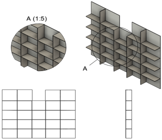 This research investigates the influence of fin integration on the architectural configuration of container heat sinks, testing three main types of heatsink models: the base model, the square model, and the hexagon model. The judicious selection among these heat sink configurations critically affects the augmentation of the interfacial zone between the PCM and the heatsink enclosure, which is an essential factor in heat transfer optimization [24]. Each heatsink model is designed with specific geometric characteristics, along with a cross-sectional area ratio. The basic model has a ratio of 0.3968 m², the square model 0.7171 m², and the hexagon model 0.8069 m². This difference in cross-sectional area ratio directly affects the heat absorption and release capacity of the PCM. Detailed illustrations of each evaluated heatsink container model are presented in Figure 3, which provides a visualization of the fin configuration and internal structure.
