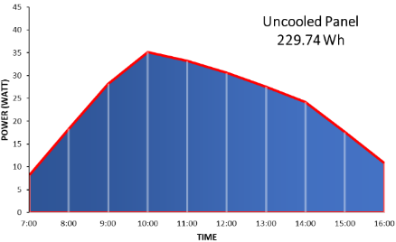 The electrical efficacy of a PV module is quantifiable as the cumulative electricity generated over a defined testing interval. The power output is systematically evaluated and ascertained by multiplying the measured current (I) and voltage (Volt) outputs, as delineated in Eq. (1) and Eq. (2), respectively [27]: