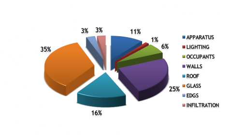 The heat balance corresponds roughly to heat inputs from outside. This is a key component in designing a suitable and economy air conditioning. It allows sizing the air conditioning unit, whose role, is to remove heat from the room to the outside.