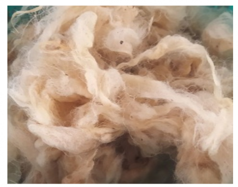 The first step consists to make one wash with distilled water, then a chemical treatment by immersion in a solution of 1% NaOH is applied for 1 hour, followed by a second washing in distillated water and a drying of the sheep fibers in an oven at a temperature of 50℃. Figure 2 represents the fibers of sheep wool immersed in a 1% NaOH solution and sheep's wool after drying and washing in distilled water.