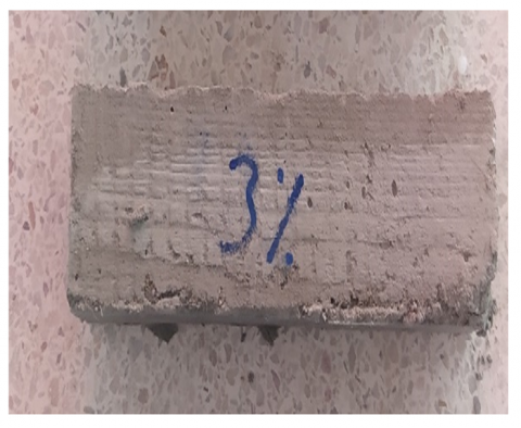 The recorded values of the compressive strength of the composite of 2% and 3% are interesting for the manufacture of load-bearing materials, such as concrete blocks for load-bearing walls.