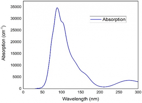 Figure 13 displayed the parameters of absorption of (a) Phenyl-P With an absorption value close to 40,000 cm−1−1, the absorption spectra of Phenyl-P have a pronounced peak at about 13 nm, suggesting substantial UV absorption that is probably caused by π-π* electronic transitions in the phenyl rings. At shorter wavelengths, smaller peaks indicate more structural changes. Absorption quickly decreases after 15 nm and exhibits little interaction with visible and infrared light. Because of this pattern, Phenyl-P is perfect for UV-blocking applications, including coatings or films, since it protects against UV rays while maintaining transparency for visible light. Phenyl-P's aromatic structure plays a role in this activity, which makes it appropriate for industrial and pharmaceutical applications where controlling UV interaction is necessary [43].