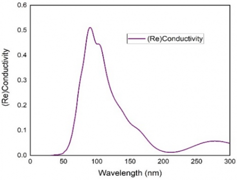 In Figure 14(b), this diagram illustrates the imaginary part of the optical conductivity for 10-MDP plotted against wavelength (nm). It shows a sharp peak near 100 nm, reaching about 0.3 units, which suggests strong polarization effects at short wavelengths. The conductivity then dips into negative values, indicating energy storage in the material, before stabilizing at around 200-300 nm. Beyond 400 nm, the conductivity approaches zero, indicating minimal polarization effects at longer wavelengths. This suggests that 10-MDP interacts more strongly with UV light, with less interaction in the visible ranges [46].