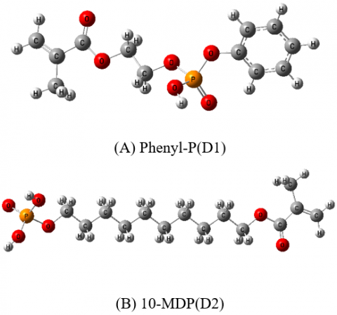 Figure 4. Optimizing the geometric structure of (A) D1 Phenyl-P and (B) D2 10-MDP [26]