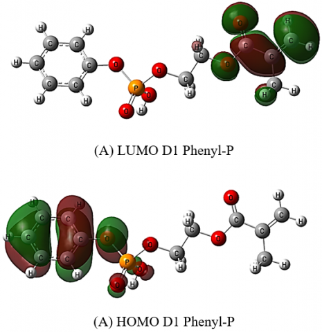 The optimal atomic configuration for increasing the stability of the molecule was determined by geometry optimization [27]. In this study, we looked at many dental polymers, labeled A and B in Figure 4, to look a chemical structure with the best optoelectronic criteria for use in Phenyl-P (D1) and 10-MDP applications. Getting a molecule's structure just right is crucial for predicting its properties. Before a structure reaches its most stable form (or optimized structure), several steps are required to fine-tune it (Figure 4). To check the accuracy of the optimized structures, we calculated the bond lengths and angles, which helped determine whether they were at a stable state or a transition point. If a structure has higher-order bond lengths and angles, it's considered to be at a transition state. Finally, once a structure reaches its lowest energy state, it should have no negative frequencies, indicating that it’s fully optimized.