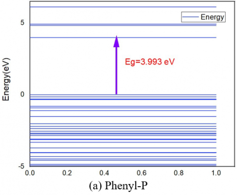 The optimization process of Phenyl-P using the approach of density functional theory (DFT) with the B3LYP functional and the data of 6-31G(d) basis set involves calculating the molecular structure by minimizing the energy of the system while adhering to quantum mechanical principles. The B3LYP functional is a combination of Becke's three-parameter exchange functional and the Lee-Yang-Parr correlation functional. It strikes a good compromise between speed and accuracy. The 6-31G(d) basis set has polarization functions that contribute to making it easier to describe molecular orbitals in systems where electrons are spread out, such phenyl and phosphate groups. During optimization, the geometry of Phenyl-P is iteratively adjusted until the total energy and forces on atoms converge to a minimum. This ensures that the resulting structure corresponds to the molecule's stable configuration under the applied theoretical conditions. The approach is widely used for studying electronic properties, reactivity, and conformational behavior of molecules.