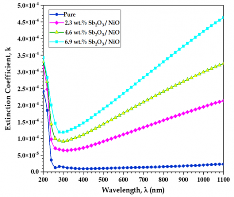 Figure 10. Extinction coefficient of PVA/Sb2O3/NiO nanocomposite with wavelength
