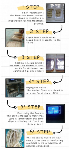 In this study, the fiber was soaked in liquid smoke for 1, 2, and 3 hours, followed by heat treatment at 40℃ for 30 minutes. After treatment, the fibers were used to fabricate composite materials, which were then tested for impact, flexural, tensile, and acoustic properties of the STLF composite, as illustrated in Figure 3 and Figure 4.