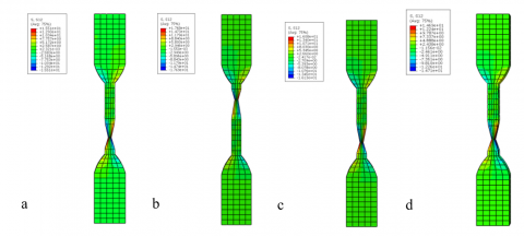Figure 7. Simulation results in abaqus software (a) Without treatment, (b) 1 hour treatment, (c) 2 Hour treatment, (d) 3 Hour treatment