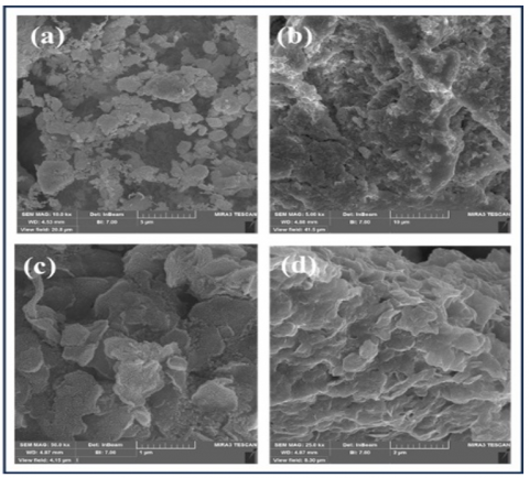 Surface morphology investigated by Field Emission scanning electron microscopy (FE-SEM) demonstrates significant differences between pristine and Mg²⁺-doped films. The undoped Cs₂NaBiI₆ layer shows a granular texture with voids and incomplete grain coverage. With Mg²⁺ doping up to 3%, the grains become more compact and interconnected, resulting in a denser film with fewer pinholes. This microstructural improvement is expected to suppress non-radiative recombination pathways at grain boundaries. At higher Mg²⁺ content (5%), however, the films exhibit irregular morphology and the reappearance of voids, consistent with the XRD results that indicate reduced crystallinity. While atomic force microscopy (AFM) or grain size distribution analysis was not performed, the FE-SEM evidence qualitatively demonstrates the beneficial role of moderate Mg²⁺ incorporation. This limitation is acknowledged as part of the experimental scope (Figure 2). However, the lack of AFM analysis or quantitative grain size distribution remains a limitation, and such data would strengthen the morphological discussion.