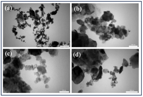 Figure 3. TEM images of Cs₂NaBiI₆ nanoparticles: (a) undoped, (b) 1% Mg, (c) 3% Mg, and (d) 5% Mg