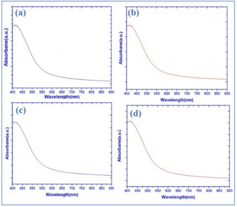 Figure 4. UV–Vis absorption spectra of Cs₂NaBiI₆ films with different Mg doping levels: (a) undoped, (b) 1% Mg, (c) 3% Mg, and (d) 5% Mg