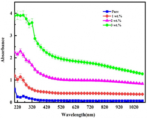 Figure 4. (PVA/CuO-In2O3) nanocomposites absorbance spectrum as a function of wavelength